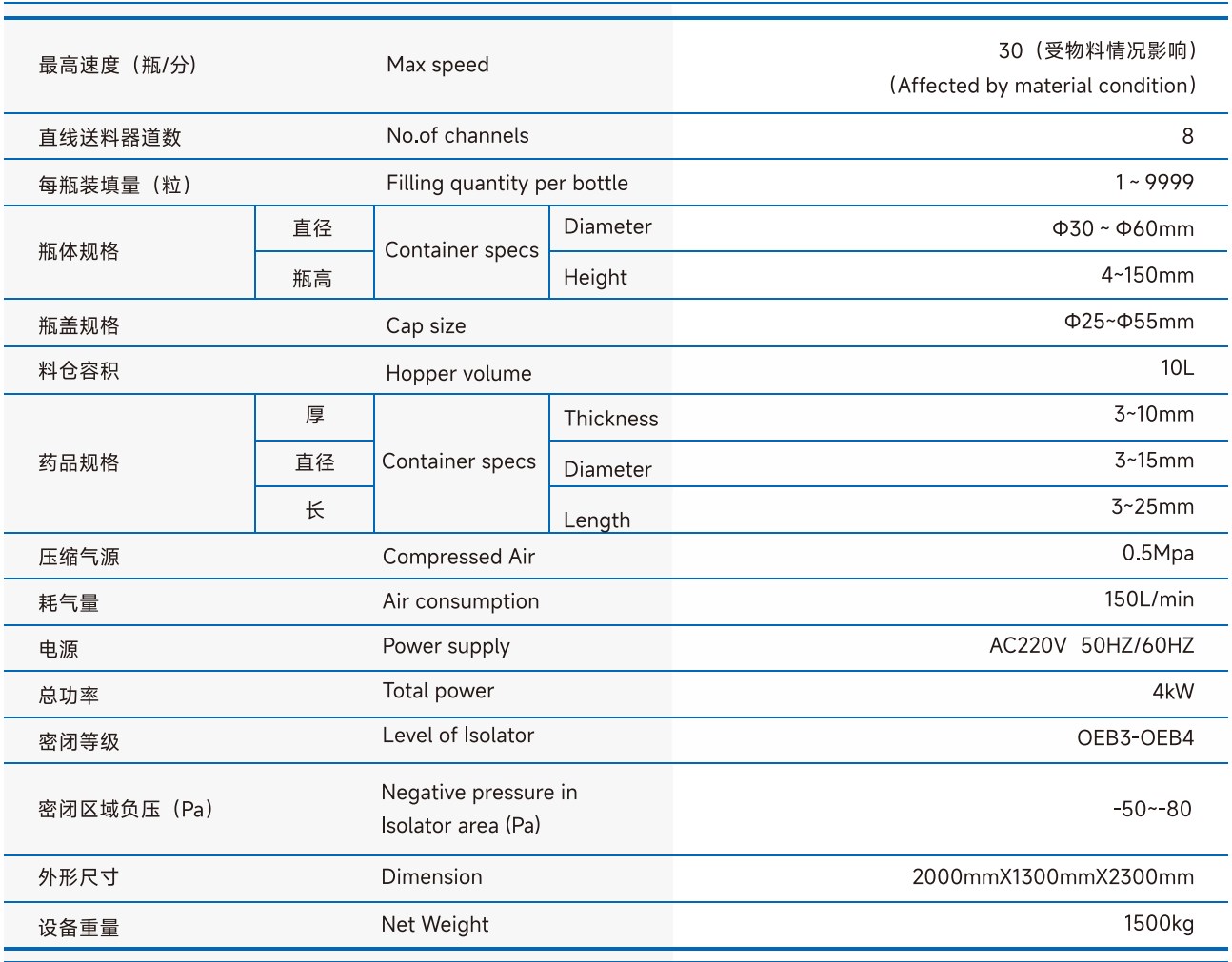 | 装量精度 | ≤ 3% | |||